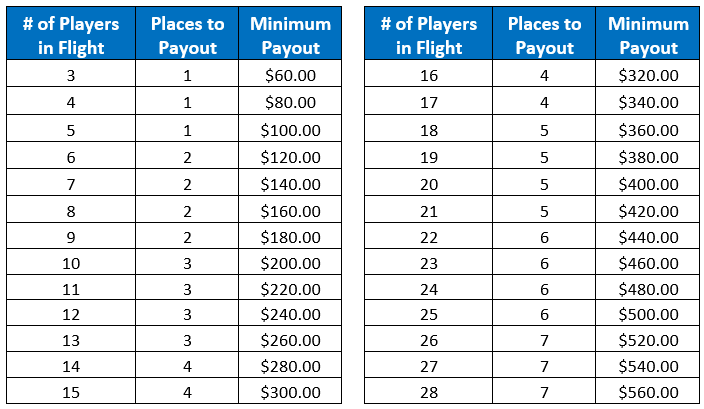 Field sizes and flight offerings will vary at local and major events. Tournament Directors have final authority on combining flights based on player participation at all tournaments.