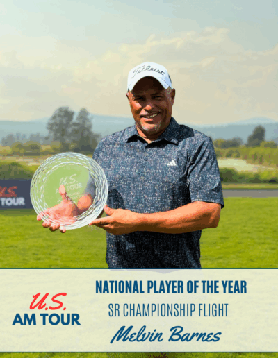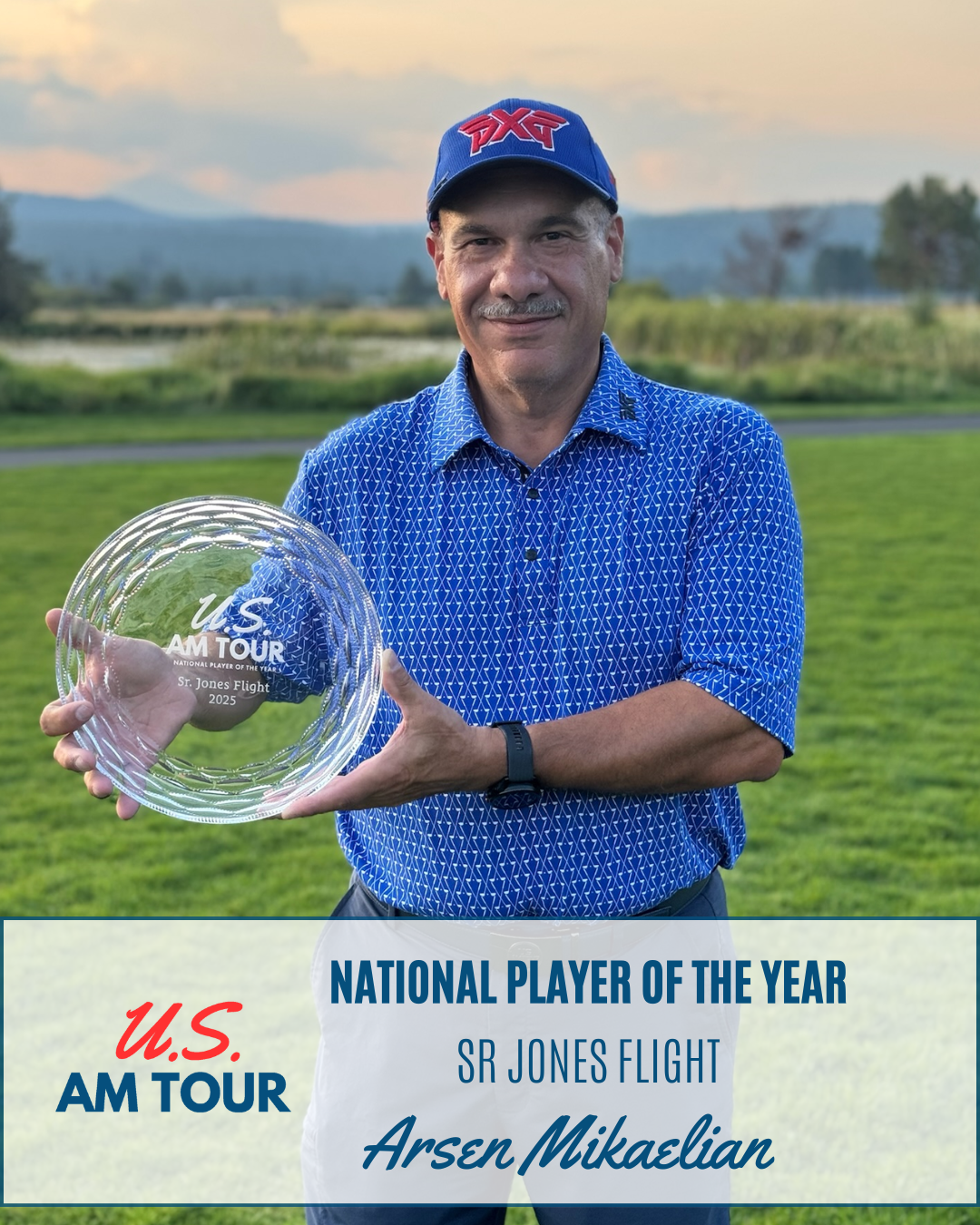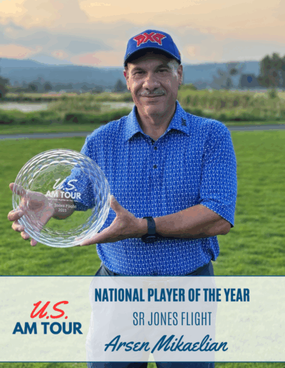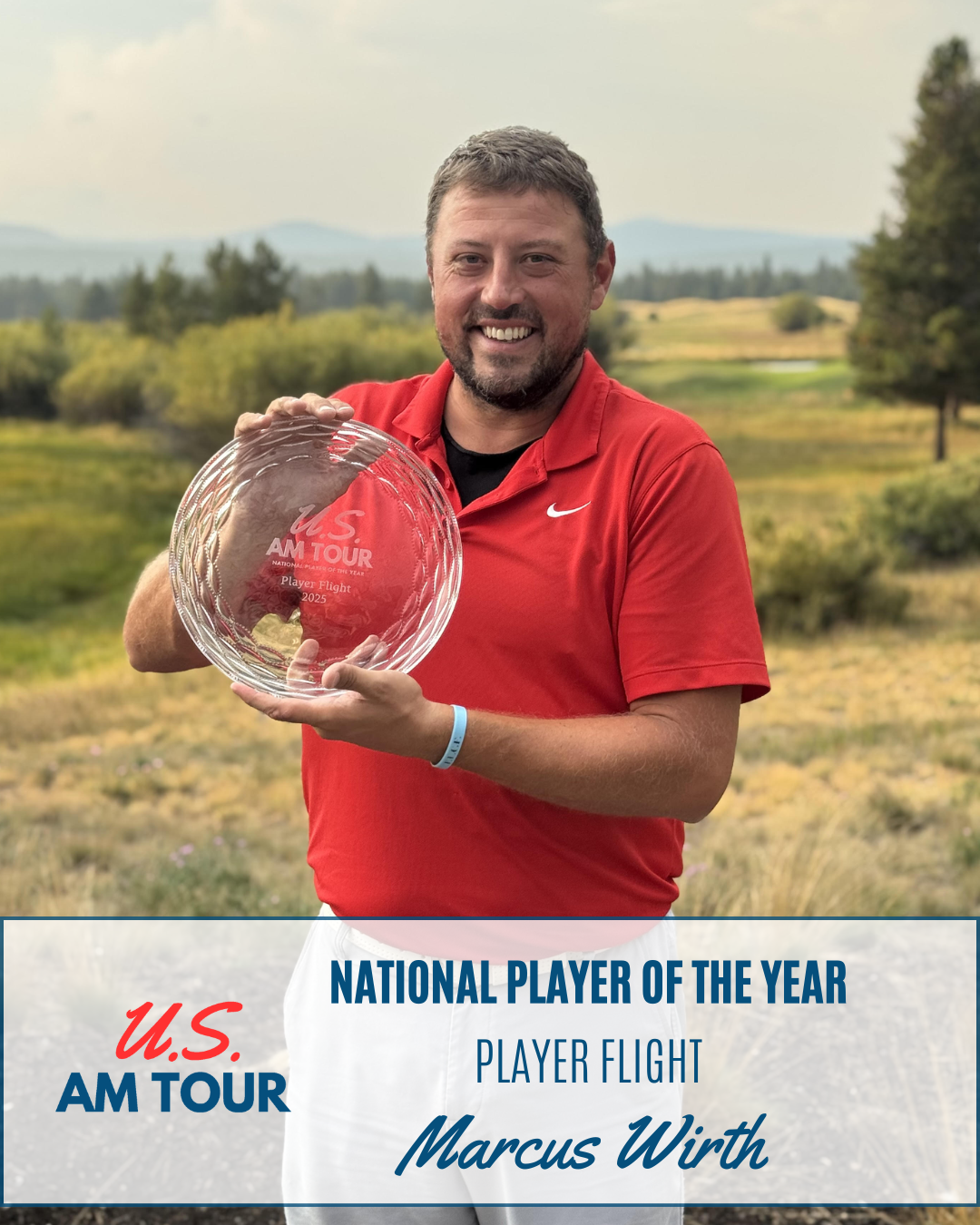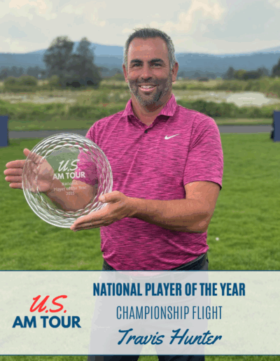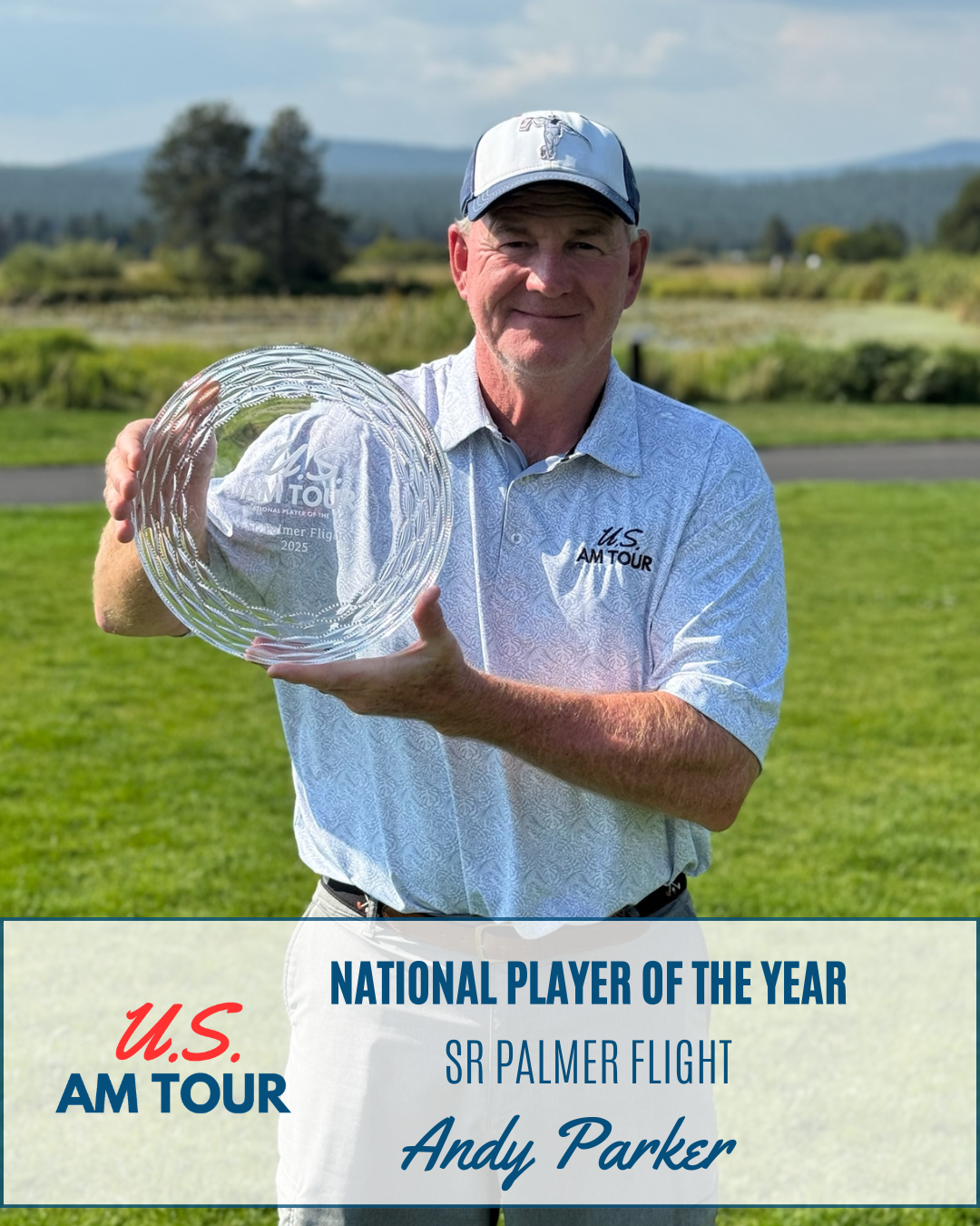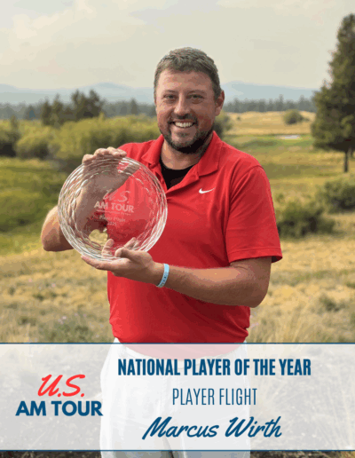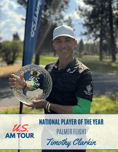 U.S. AM Tour will recognize a National Player of the Year for each flight at the National Championships. The National Championship will count toward your point total, along with your best ten (10) finishes throughout the season. The National Player of the Year for each flight will win a commemorative crystal trophy, logo’d travel bag, and a paid membership for the following season. Players who finish in the top 5 (including ties) on the NPOY Standings will also receive a paid membership for the following season.
