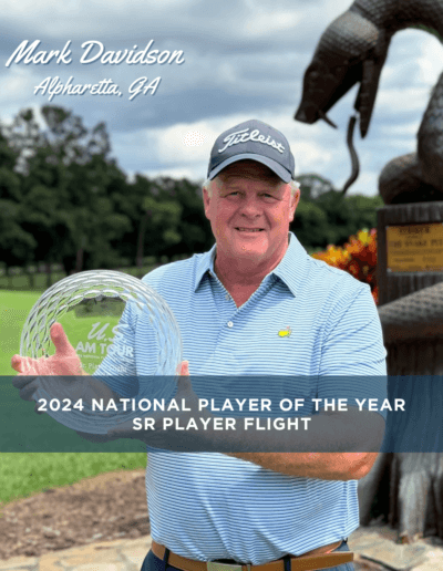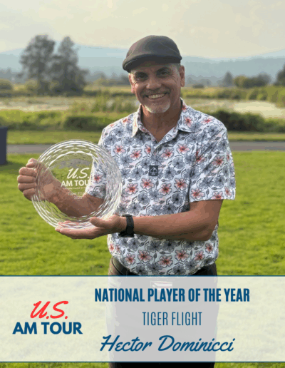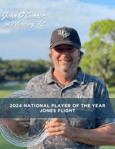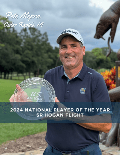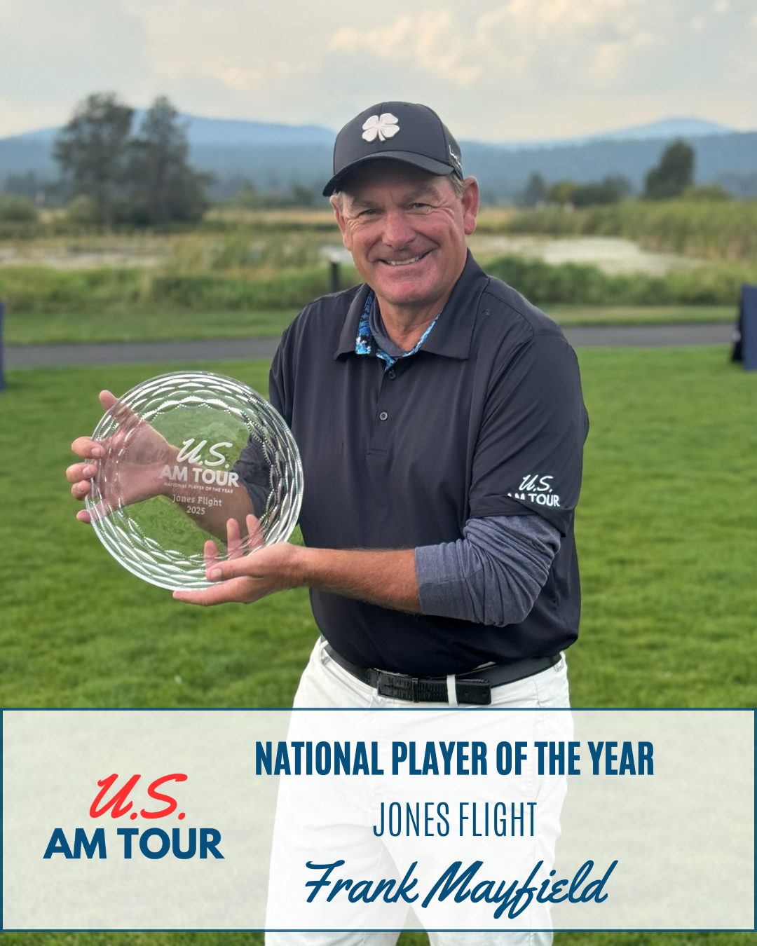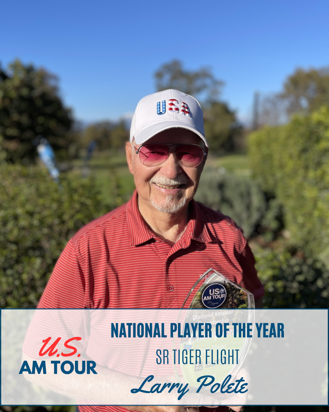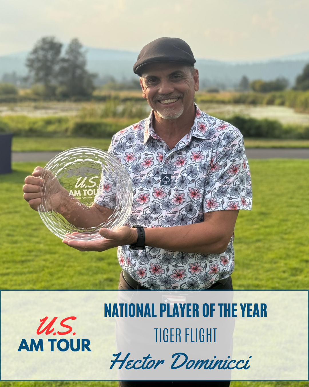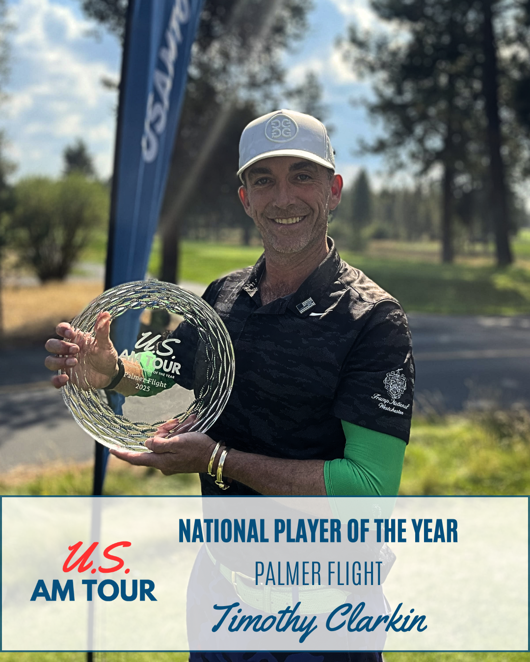 U.S. AM Tour will recognize a National Player of the Year for each flight at the National Championships. The National Championship will count toward your point total, along with your best ten (10) finishes throughout the season. The National Player of the Year for each flight will win a commemorative crystal trophy, logo’d travel bag, and a paid membership for the following season. Players who finish in the top 5 (including ties) on the NPOY Standings will also receive a paid membership for the following season.